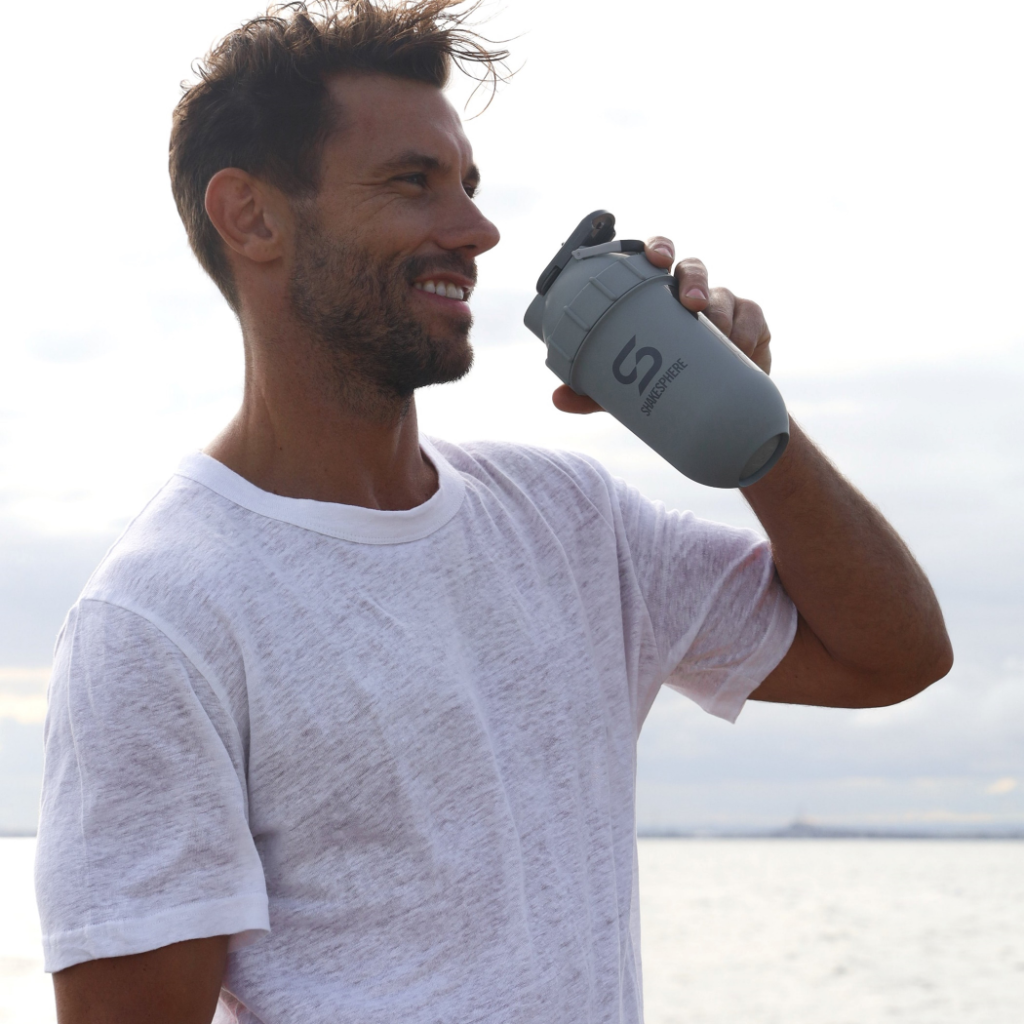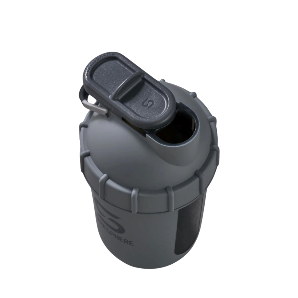 Here’s how a ShakeSphere bottle works. Instead of using mixing accessories like a wire ball or mesh grid, our bottles use the centrifugal force generated by a round, no-corners design to break down powder supplements in a mere five seconds of shaking. Shake for another five seconds and you can even enjoy soft fruit in your shake for the ultimate post-workout boost.